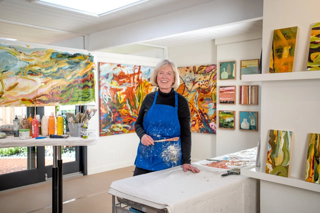 I grew up in a musical household playing many instruments and singing. I loved drawing horses and flowers. In college I felt like a kid in a candy store, changing my major 5 times. Eventually, to support my family, I focused on design and had my own commercial interior design business for many years.