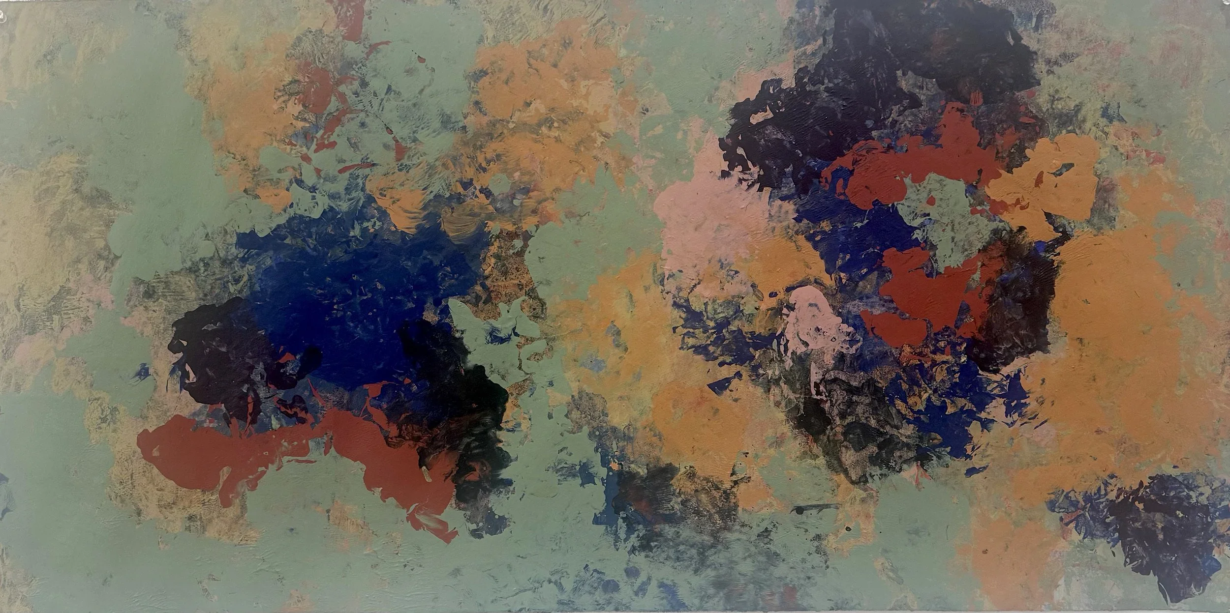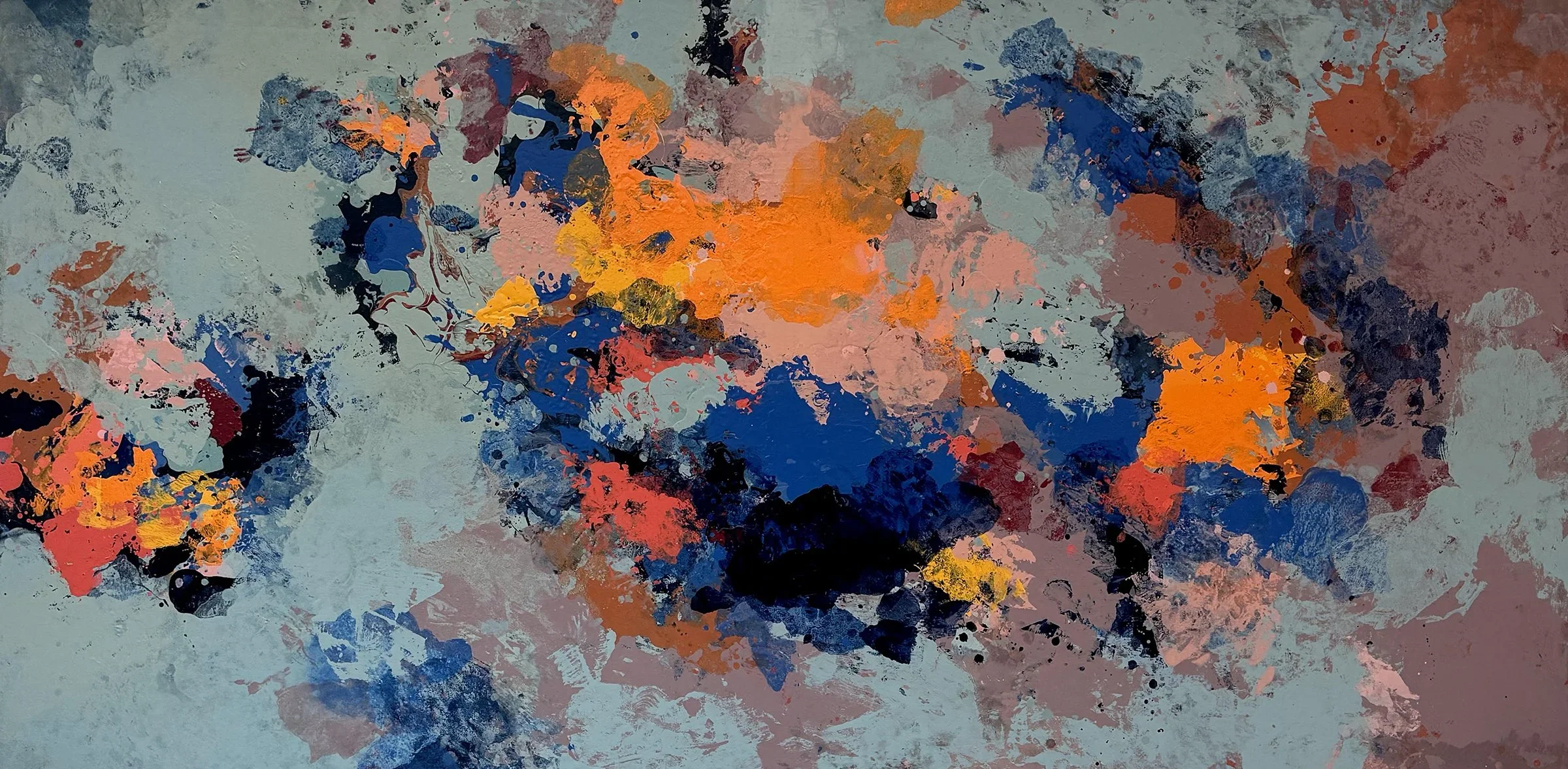 A painting is felt through the eyes and it either “works” or it doesn’t. I guess it’s very intuitive. I always start with some kind of intention, but the material, the paint, very quickly establishes itself and generally refuses to cooperate. Then it’s game on.