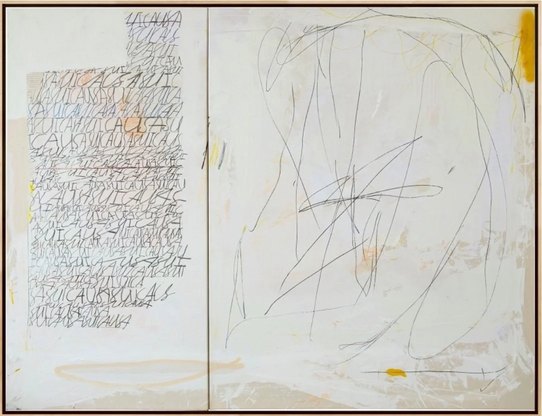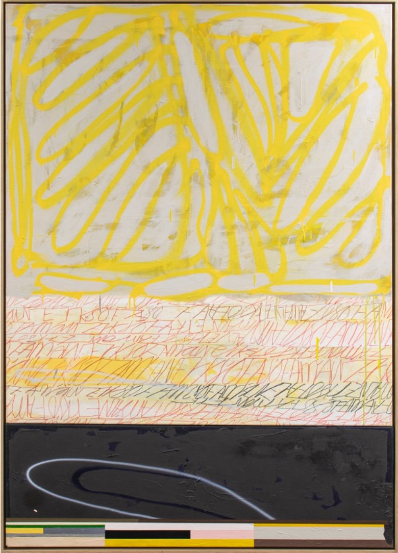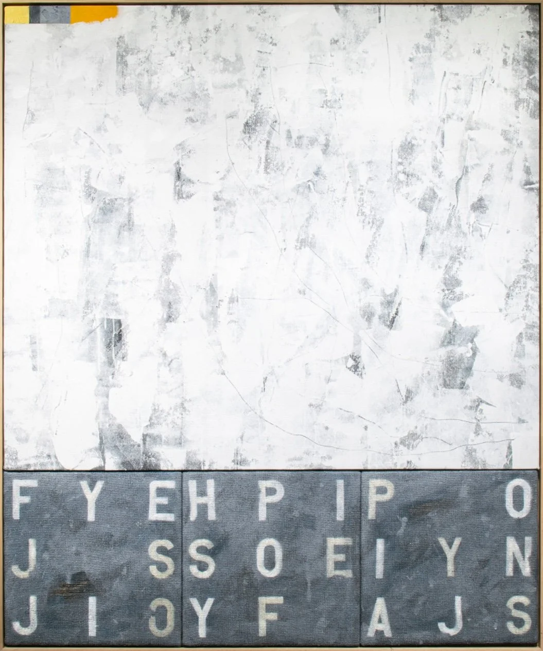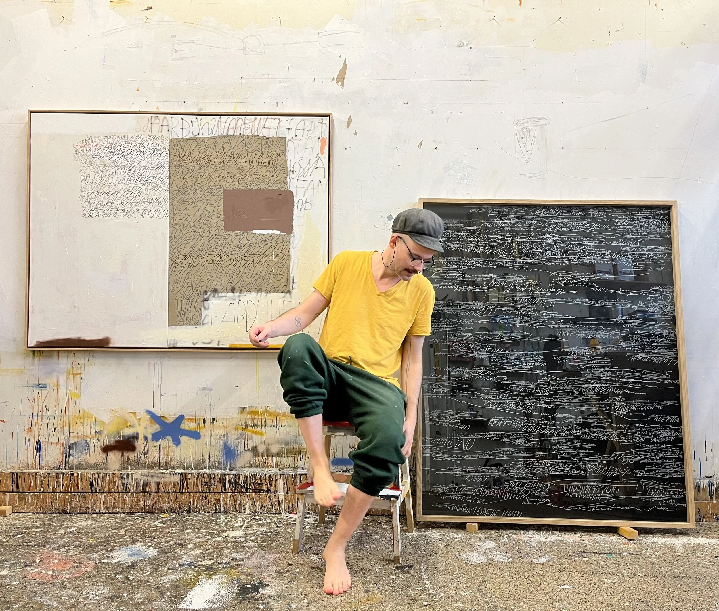 My work is rooted in painting, but I approach it through texts, whether it is from my own diary or through the philosophy of language. I’m interested in how meaning is shaped, shifted, and sometimes even destabilized by language, and I try to explore that visually on the canvas. For me, painting is not just about form or color—it’s a way to understanding things, of translating ideas from maybe philosophical thoughts into a more personal, material expression. I often connect these ideas to my own life and experiences, so for the viewer my works can become both as something collective but yet intimate. In that sense, my practice is about finding a dialogue between thought and feeling, between language and image.