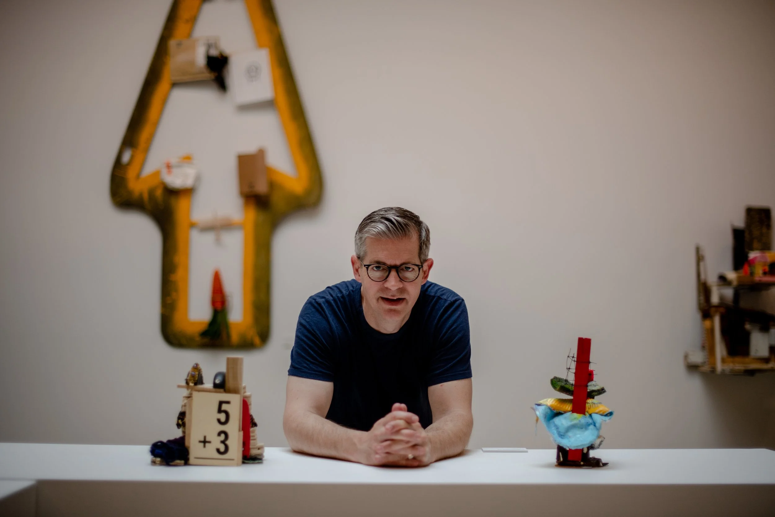 My work is a hybrid of painting and sculpture—grounded in painting and constructed of things found and collected. I try to make things that are vibrant, funny, memorable, and sometimes confusing.