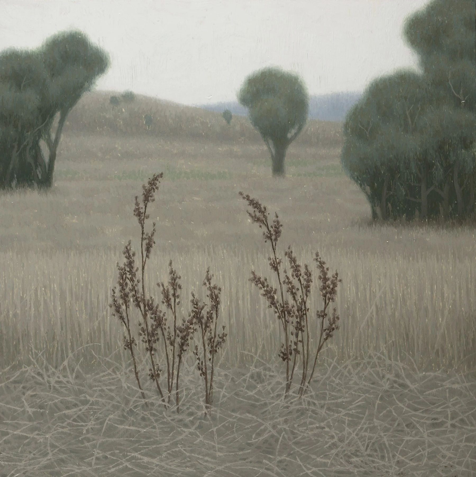 I make paintings mainly with watercolour and oils and I guess I could use "landscape" as a broad term to cover most of what I paint. I draw my inspiration and motifs from a rural farming environment where I grew up and have also lived on for many of my adult years. My paintings are part real and part imaginary and it's rare for me to paint a scene as I saw it. I prefer to let my mood and thoughts influence the direction of the painting when working on it in the studio. The resulting images can have a slightly odd or dream like quality.